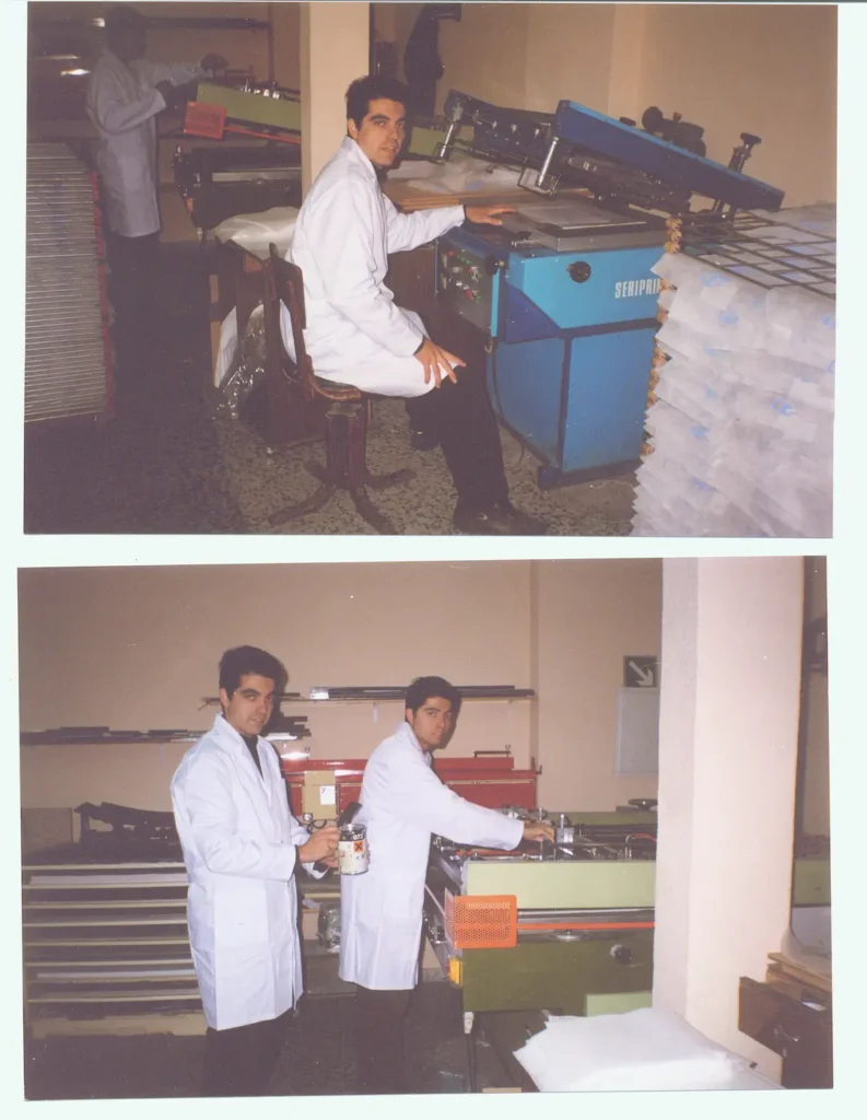 A principios de los 90 tuvimos la revolución de fax que nos permitió entender mejor los diseños sin tener la necesidad de que se acercase el cliente. A mediados de los 90 fueron la revolución de los ordenadores por lo que nos compramos un Mac G4 que era una pasada, con su escáner y impresora para poder imprimir tanto facturas como diseños y fotolitos; eso nos hizo aprender diseño gráfico. Ante los problemas de la máquina circular decidimos sustituirla por una máquina de tampografía que era más rápida, limpia y sencilla de manejar.