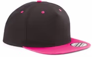 Gorra bicolor, la visera es de colores vivos es recta y muy firme. El frontal es recto y alto, permite tener una gran superficie de marcado.